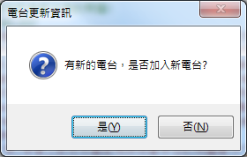 有新的電台資訊的話的話就會提示, 問問看你要不要更新